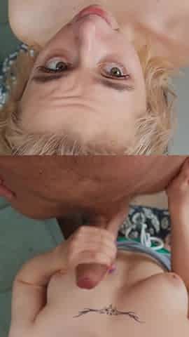 18yo Blond Amateur Gal Gets Upside Down Mouth Screwed By Monster BWC