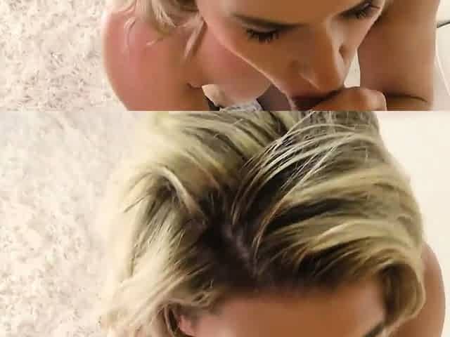 Two amateur blonde teen babes sucking huge fat cock