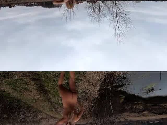 Nude Blonde Walks in Autumn Village