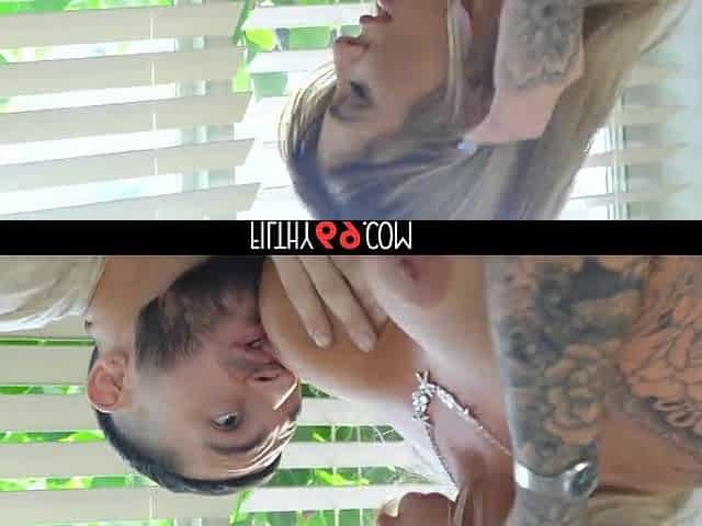 BBW tattooed MILF April Velvet fucks teen guy in a hotel room