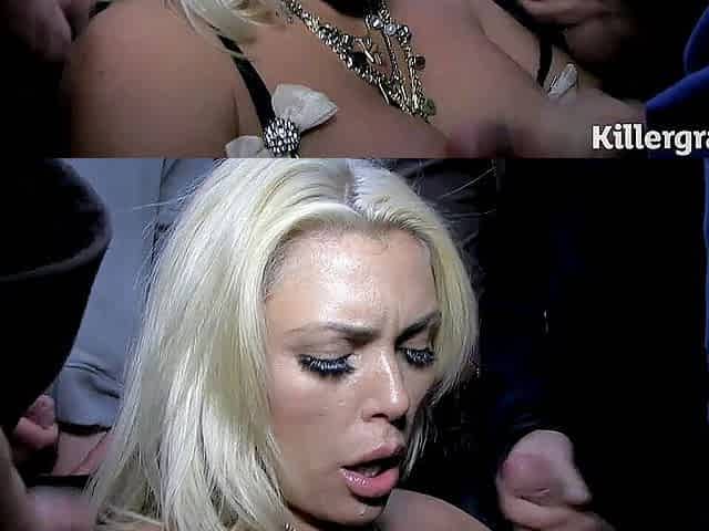 Little slut blonde angel in hell endures extreme blowbang and gangbang action with revenge cum play