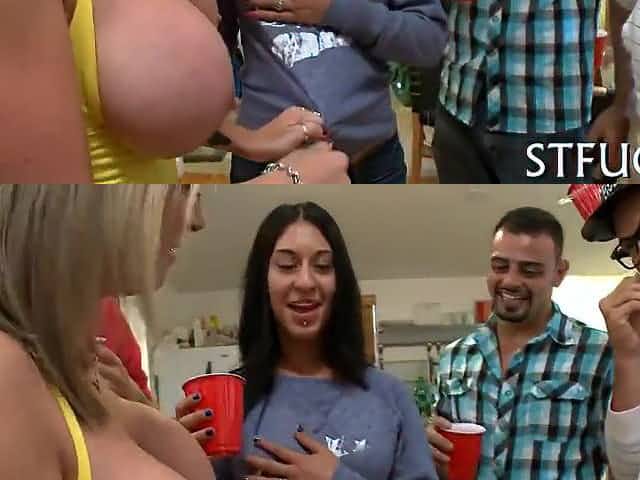 Large Breasts Latin Babe Blowbang