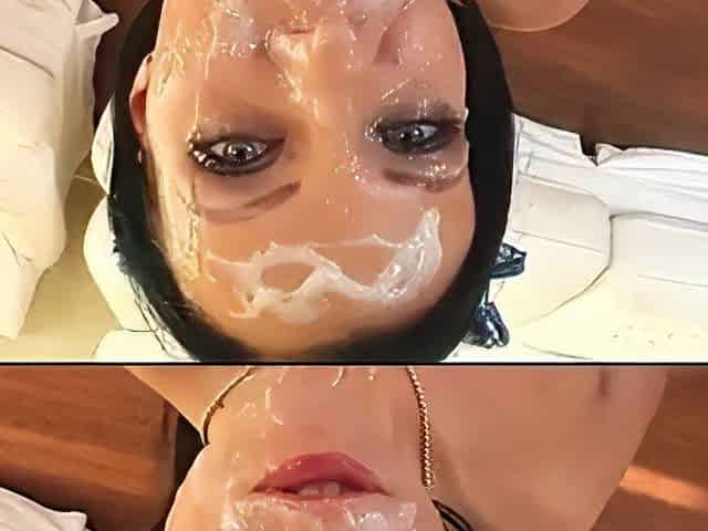 Auf der Bukkake Party gibt es Massen Sperma auf ihr Gesicht,