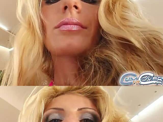 Beautiful Busty Blonde GL Blowbang Cum Swallow