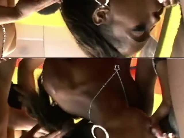 Ebony Chick Melody Enjoys Blowbang With White Rods