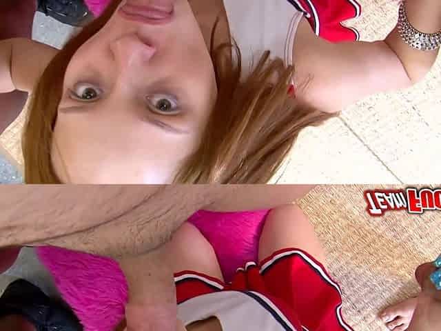 Slender Blonde Teen Sucks Cock and Takes Facials in Her Bra and Panties