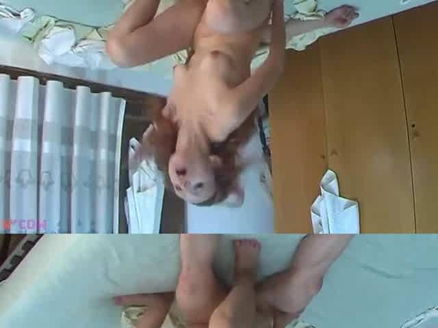 Man Gets Used as a Sex Toy by This Skinny Redhaired Hot Woman with Little Boobies