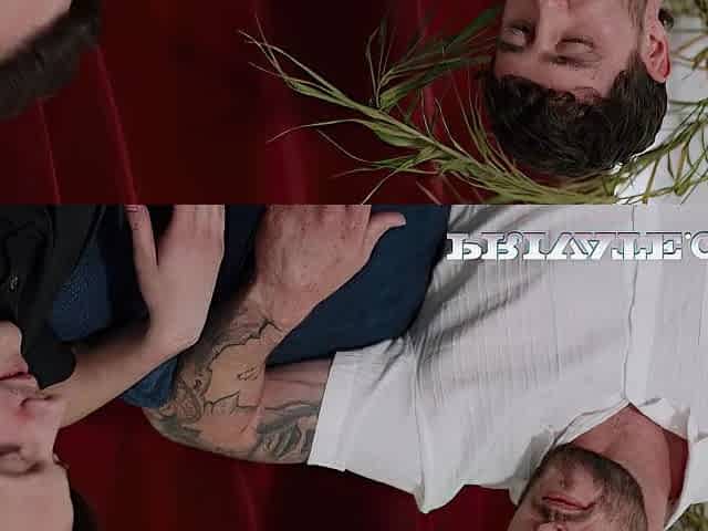 2 angels with tattoos get their throats overspread in cum in a three-some
