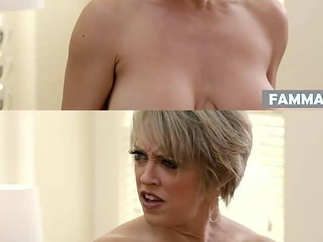 Deepthroat on boyfriend's big dick before sharing it with her mom