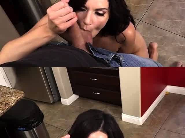 Big tit brunette sucks a big cock POV