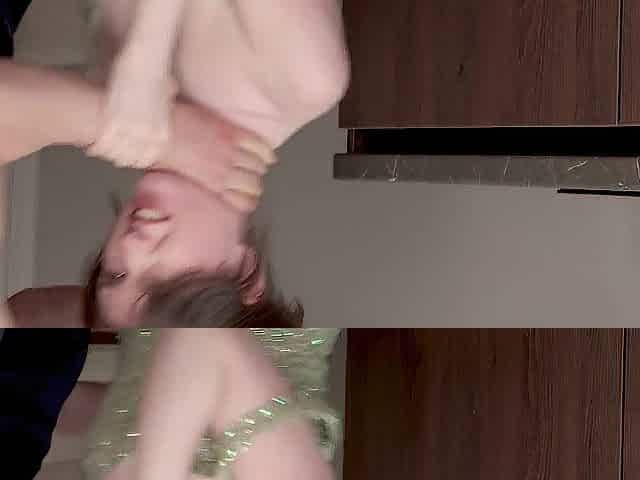Трахнул похотливую соседку по комнате не снимая платья, кончил на задницу- Elis Cute