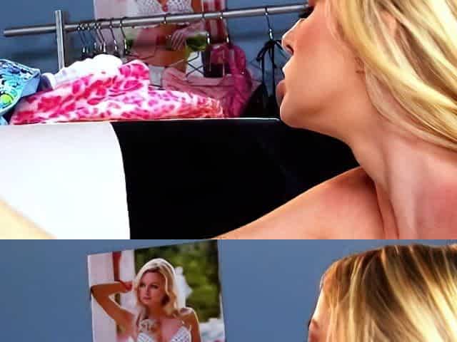Blonde hottie and brunette slut licks and kisses each others
