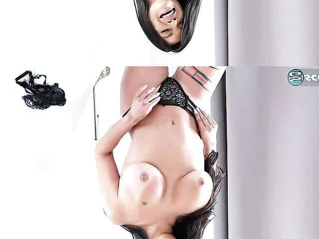 Big-boobed brunette Isabella Flames nicely plays with her wet hole