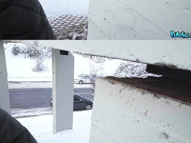 Charlie Dean's Public Blowjob in a Czech Snowy Garage Scene