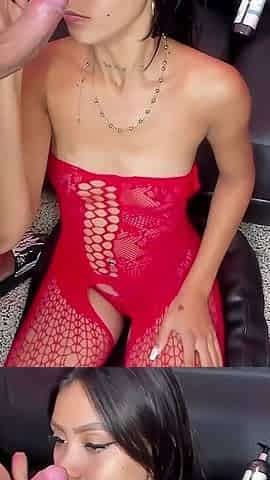 Megaton Boobs You Can See Even Through Her Clothes. Car Blowjob, Cum in Mouth, She Swallows It All!
