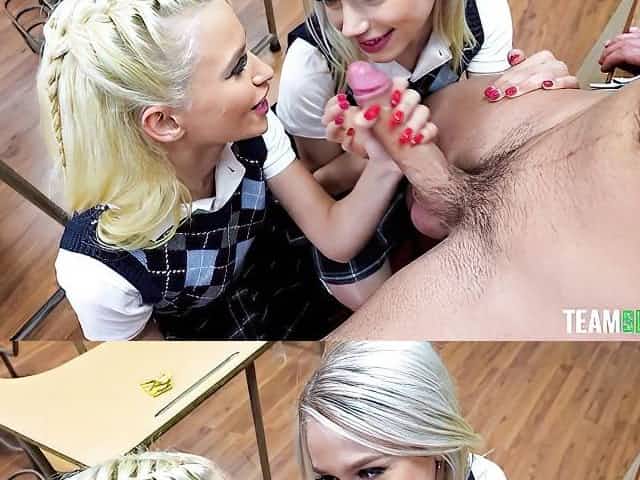 Schoolgirls doing blowjob