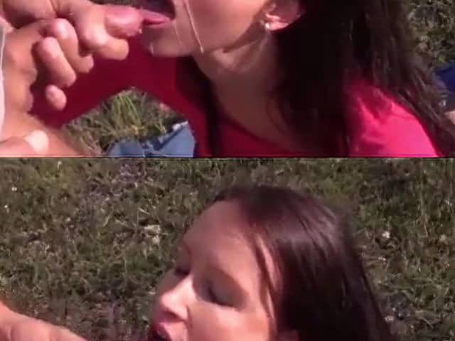 Blow job/Spunk fountain SUPERCUT - this babe sucks and licks him dry!!!