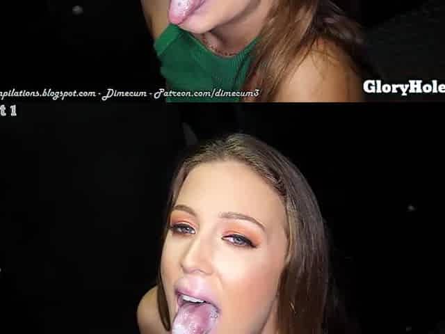 Luna swallowing cum at the Gloryhole Compilation PMV by Dimecum.com