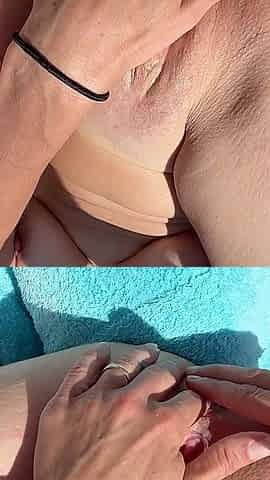 Vintage fantasy hot wife Alwaysfunnopants strips and plays with herself on the cruise ship balcony