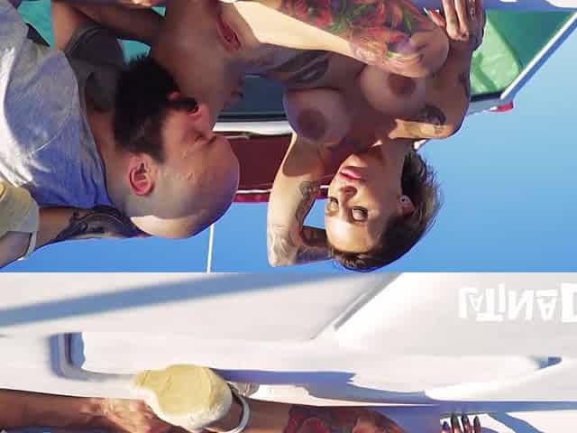 Naughty couple fucking on a boat outdoors: busty MILF Gina Snake with Max Cortes