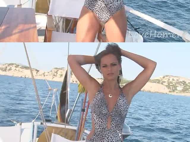 Brunette bombshell shows off on the boat
