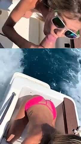 Sexy girl bends over and gets her pussy licked outside on a boat