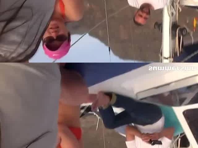 I shlong tease him on a boat with people watching us and then I jump on his knob untill this chab cums