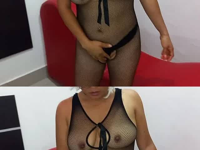 In Fishnet Bodystocking Gives Blowjob