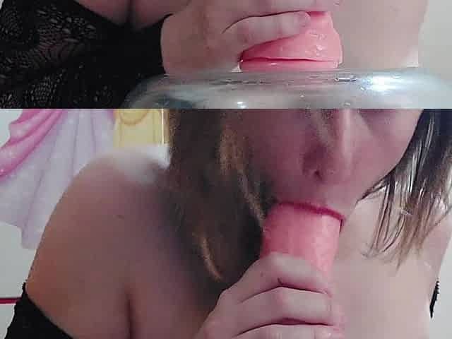 Beautiful and naughty girl enjoys sucking a huge dildo - blowjob
