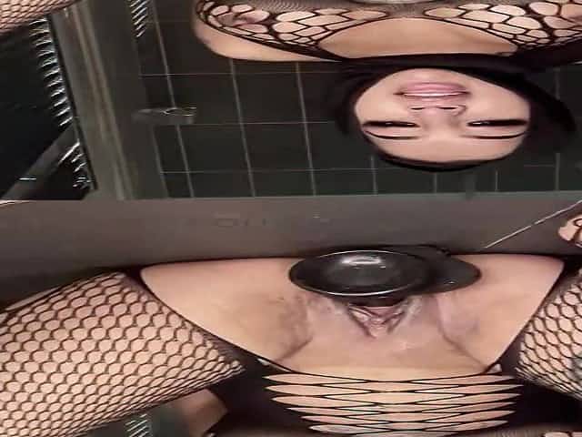 Pengali Princess is wearing a ebony, fishnet bodystocking and a head scarf whilst masturbating on web camera