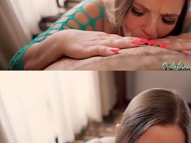 Eye contact, titty fuck, bodystocking