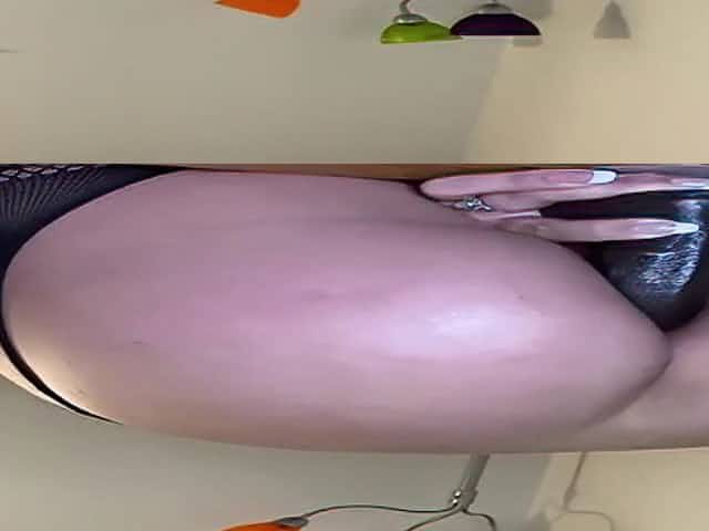 Chloe J rips a hole in her fishnet bodystocking before masturbating