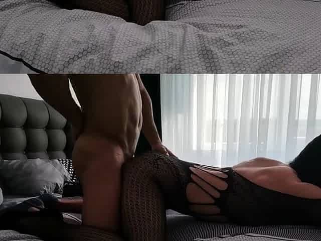 Sexy hoe in nylon bodystocking is riding her BF's cock like a boss