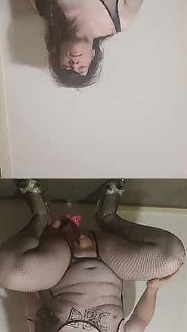 large Booty in bodystocking! Screwing my moist cunt with sex toy after job