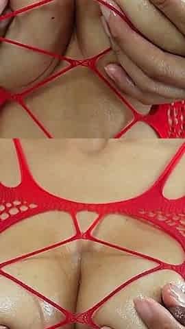 Nipple Play in Red Bodystocking