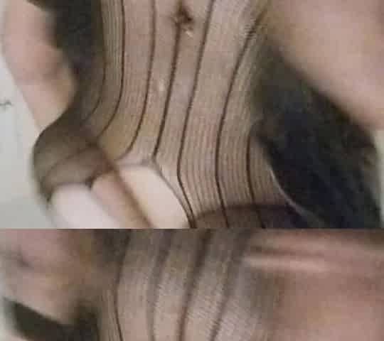 Hot babe in a fishnet bodysuit getting it on while sitting on a stool
