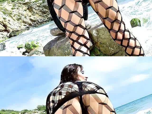 Masturbating in a bodystocking