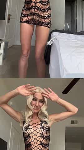 Skinny Blonde Dances in Lingerie Sheer Black Dress with Bare Ass and Pussy