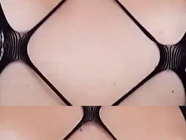 Hot babe in a fishnet bodysuit getting it on while sitting on a stool