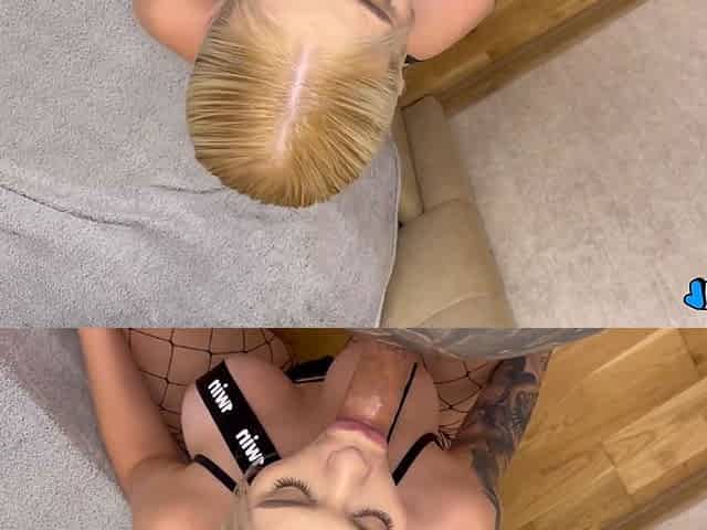Blonde Babe Badgirl with Neon Fishnet Lingerie Gets Licked to Orgasm and Then Receives a Creampie