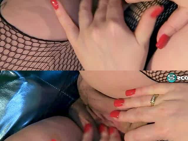 Hot hotty in fishnet body stocking rides a giant mock schlong