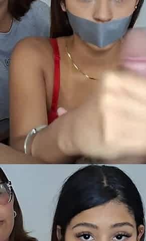 Indian Girl Sucking Dick with Her Hands Cuffed Behind Her Back, Cum in Mouth, Cum Swallow
