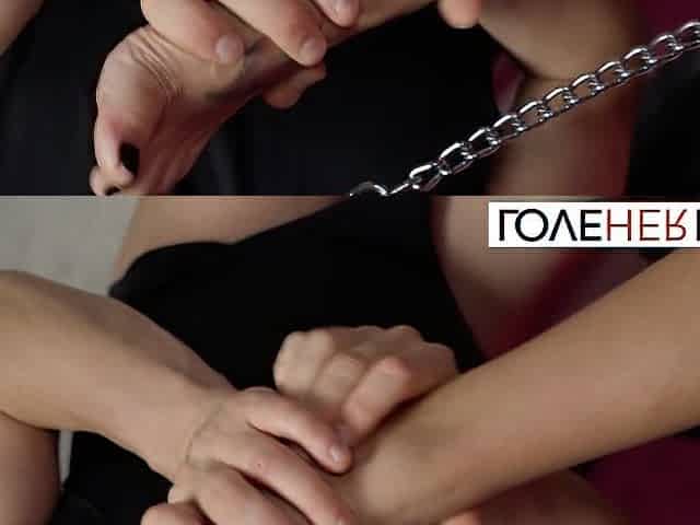 Slavery sex scene, bound up to a chair, blindfolded, i take a ramrod down my throat, cunt and booty with