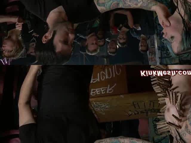 alternative maid spills platter & gets rope-tied sextoy torture - struggling in cage