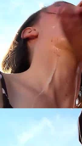 Cock Sucking Babe Kneels, Deepthroats and Ass Riding Huge Cock Outdoor