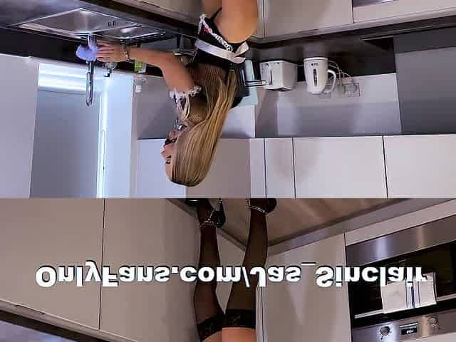 HAWT wicked kitchen maid finds a sex-toy and bangs herself to climax