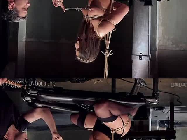Redhead in hogtie suspension vibed