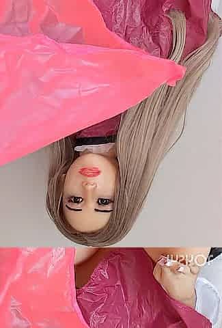 Sexy Oriental doll vinyl and nylon shortie cape fetish play multi cape show