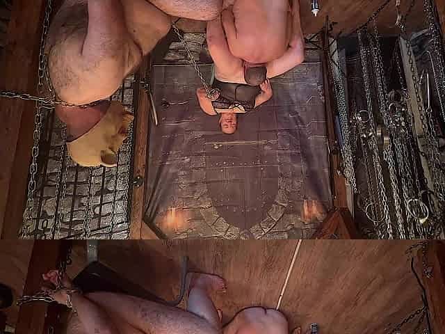 Tattooed corpulent slave suspended and dildo got laid