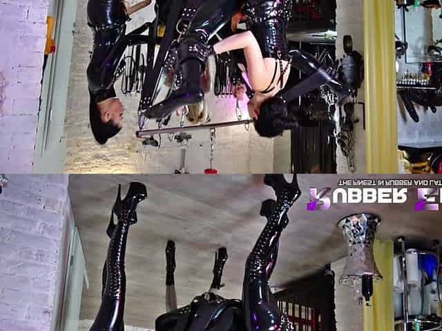 Small painslut suspended upside down for hard fbutt slaming after drinking her sadistic taskmaster's urinate